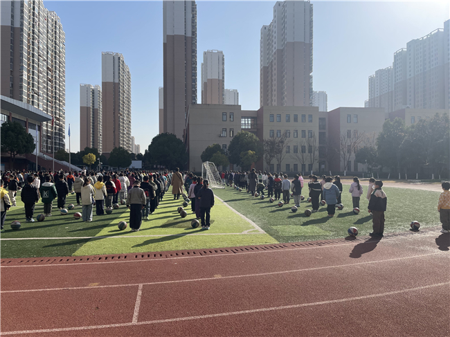 全校学生以班级为单位整齐列队,依次开展广播体操、趣味体能训练、集体跑操等活动。学生们动作规范整齐、精神风貌昂扬,展现出良好的组织纪律性和运动热情。