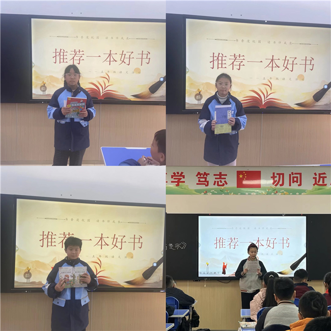 活动中,同学们带着自己珍爱的书籍闪亮登场。从《国之脊梁》中感受民族英魂的浩然正气,在《三国演义》里领略历史风云与智谋韬略;从《海底两万里》遨游奇妙的科幻深海,到《呼兰河传》回味乡土人情的质朴悠长;从《正红旗下》体悟家国命运的沧桑书写,到《四世同堂》见证动荡岁月中的人间温情……