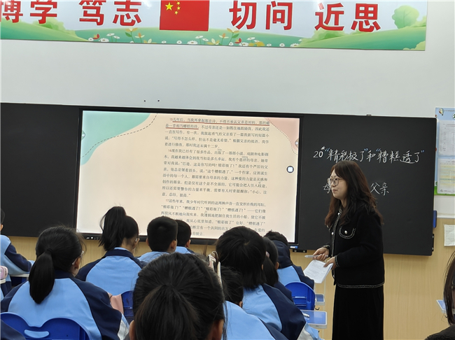 在解读环节,陈晓艳通过层层引导,帮助学生理清父母评价的差异、巴迪的心情起伏,再通过师生共读还原文本场景,让学生直观感受人物情感。“母亲是想鼓励巴迪,因为这是他第一次写诗!”“父亲写过剧本,他很专业,怕巴迪骄傲!”孩子们朴素的回答,恰恰道出了“爱有不同模样”的真谛。