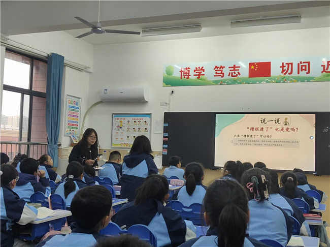 “如果你是巴迪的父亲,会对儿子说些什么?” 扮演父亲的学生们用深沉的语调表达:“我不是不爱你,而是希望你变得更好。”这一角色转换,让学生们体会到父母严苛背后的良苦用心。最后,陈晓艳将话题拉回学生自身:“你们希望父母怎样对你表达爱?”孩子们的回答真挚又暖心:“我希望妈妈夸我的时候,也告诉我哪里能改进”“爸爸批评我时,别那么凶,慢慢说”“我希望我犯错时,妈妈能给我三次机会”……在轻松的分享中,学生们不仅读懂了巴迪的故事,更读懂了自己父母的心意。陈晓艳动情总结道:“正是这两种爱,让我们长成最好的自己。”