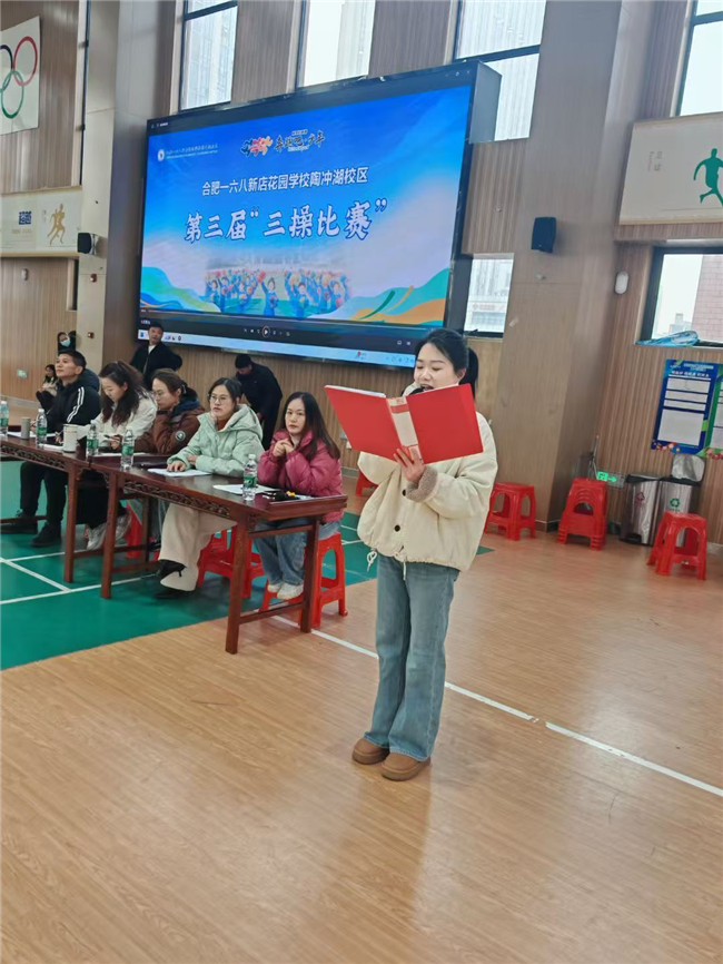 为丰富校园文化生活,增强学生身体素质,展现学子朝气蓬勃的精神风貌,2025年12月19日,合肥一六八新店花园学校陶冲湖校区隆重举办第三届“三操比赛”。全校各年级学生以班级为单位踊跃参赛,比赛分学段开展特色比拼,用整齐的动作、昂扬的姿态,为校园绘就了一幅活力四射的画卷。