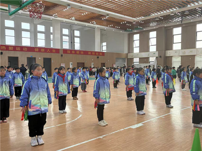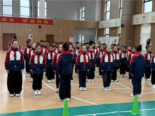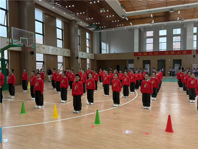 比赛现场,伴随着欢快激昂的音乐,各班队伍依次入场。同学们身着统一的服装,迈着铿锵有力的步伐,喊着嘹亮整齐的口号,精神抖擞地步入赛场。本次比赛分学段设置不同项目,小学一二年级进行广播体操展示,小同学们抬头挺胸、伸臂弯腰,每一个动作都努力做到规范标准,稚嫩的脸庞上满是认真与专注;三四年级上演武术操对决,“哈!”“嘿!”一声声洪亮的口号响彻校园,同学们出拳刚劲有力、踢腿虎虎生风,马步稳扎、弓步矫健,一招一式尽显中华武术的刚健魄力;五六年级比拼手位操风采,大哥哥大姐姐们抬手、转身、摆臂,动作整齐划一,姿态舒展优美,配合着富有节奏感的音乐,展现出良好的协调性与团队默契。从广播体操的舒展规范,到武术操的刚劲飒爽,再到手位操的灵动优美,每一个动作都彰显着同学们的认真与专注,以及强大的团队凝聚力。