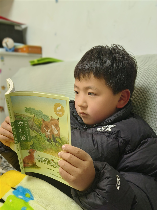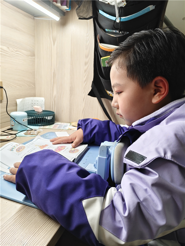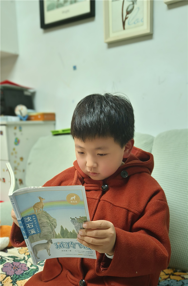 这种阅读的热情更延伸至家庭。一面墙的书架上放着各种各样的书籍。 从咿呀学语时的绘本,到步入小学后充满趣味的拼音读物、科普小故事,都成了他爱不释手的“宝贝”。每天放学回家,他做的第一件事不是跑去玩耍,而是翻开书本,跟着故事里的主人公开启奇妙旅程。无论是活泼可爱的动物童话,还是充满奥秘的自然科学,他都读得兴致勃勃,常常沉浸其中,忘记了时间。