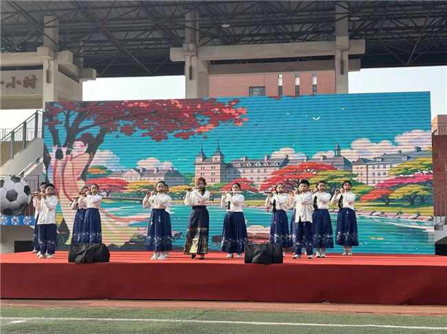 随后,各个社团与学生代表相继登场:竹笛社团奏响《凤凰花开的路口》,诉说青春的离别与憧憬;吉他社团与同学们共同演绎《稻香》,带领观众重温童年的温暖记忆;小品《霸总看医生》以幽默方式传递健康理念,赢得阵阵笑声;深情的朗诵《假如我是一滴水》《说中国,赞中国》则展现了同学们的家国情怀。