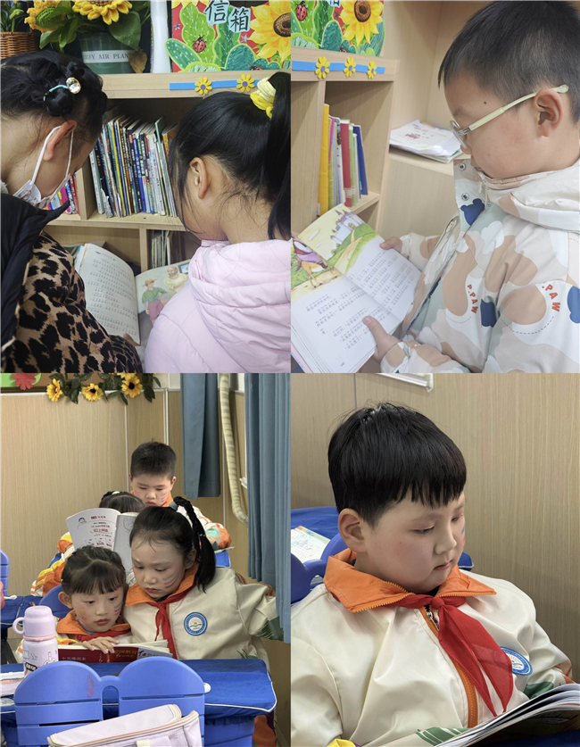 教室角落的图书角,是大家课间最爱去的地方。书架上的书不算多,但都是老师和同学们精心挑选的。午休和课间时分,常能看到同学们在这里静静翻阅,有时是一个人沉浸在故事里,有时是三两个好友头挨着头共读一本绘本。阅读的乐趣不仅在于沉浸其中,更在于分享——同学们制作的精美阅读小报也贴在教室内,有的梳理故事脉络,有的分享读后感,还有的为书中人物绘制了可爱的肖像,这份分享让个人的阅读收获变成了全班的精神财富,也激发了更多同学去发现那些被推荐的好书。班级也积极推进亲子阅读,让阅读真正走进生活。