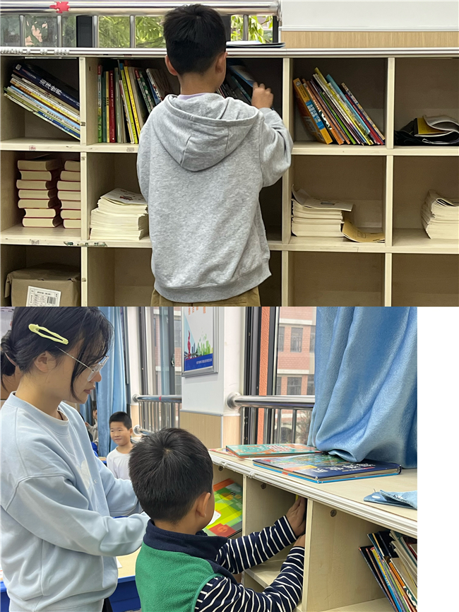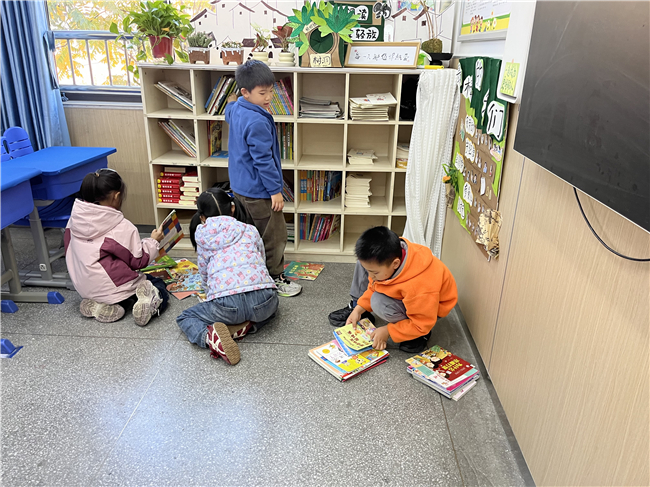 踏入教室,班级图书角这个 “文化地标” 更显温馨。书架上整齐摆放着 200 余册藏书,按 “绘本乐园”“科普探秘”“诗词天地”“故事王国” 四大类别分类标注,人均藏书达 6 册,完全满足低年级学生的阅读需求。这里是孩子们课间最热门的 “打卡地”,下课铃一响,总有三五名同学围着书架,踮着脚尖认真挑选心仪的书籍。为保持图书角的整洁有序,每天中午,班级值日生都会准时来到书架前,将借阅后的书籍归位,用小小的行动守护着大家的 “精神乐园”。