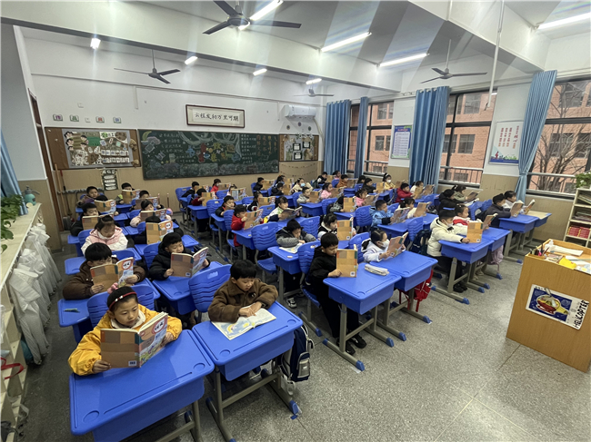 为让书香渗透到班级生活的每一处,一 (10 ) 班打造了 “三维阅读体系”:每日清晨的 “晨读时光”,教室里总能响起整齐又清脆的诵读声,诵读声时而抑扬顿挫,时而轻快活泼。读到动情处还会不自觉地加重语气,眉眼间满是投入。晨读不仅能培养孩子的语感,更能让他们在潜移默化中感受语言文字的魅力,开启一天的学习好心情。