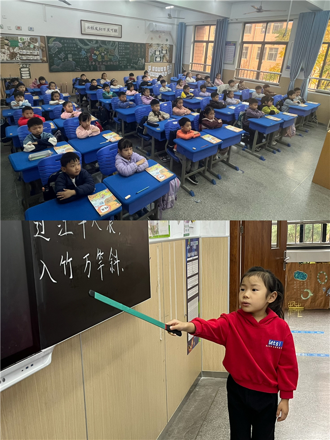 预备铃后的 “日有诵读” 则为课堂学习拉开充满书香的序幕。负责当天领读的同学快步走上讲台,带领全班同学齐声诵读,这种短时间、高频次的诵读方式,能帮助孩子们快速积累古诗,现在班里大部分同学都能熟练背诵 50 多首古诗了。一首古诗便在反复吟咏中深深印在孩子们的脑海里,不仅丰富了知识储备,更让课堂快速进入学习状态。