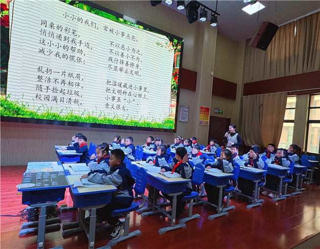 “良言一句三冬暖,我现在感觉好多了。”2025年12月24日下午,在合肥一六八新店花园学校小学部报告厅内,许瑞睿老师在一堂别开生面的语文公开课开始前,真诚地向学生们表露了自己首次在此上课的紧张心情,并随即收到了孩子们温暖而稚嫩的鼓励。这充满人情味的互动,不仅瞬间拉近了师生距离,也悄然点明了本节课的核心——“身边的小事”虽微,其蕴含的温情与道理却“不小”。