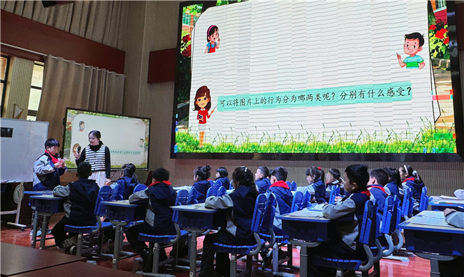 首先,化身“文明判断员”。 学生观察生活图片,将行为分类为“文明”与“不文明”,并联结“温暖”与“气愤”的情感体验,为说理奠定情感基础。