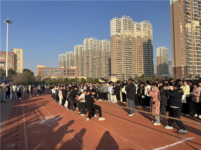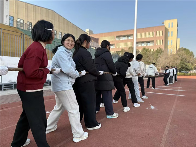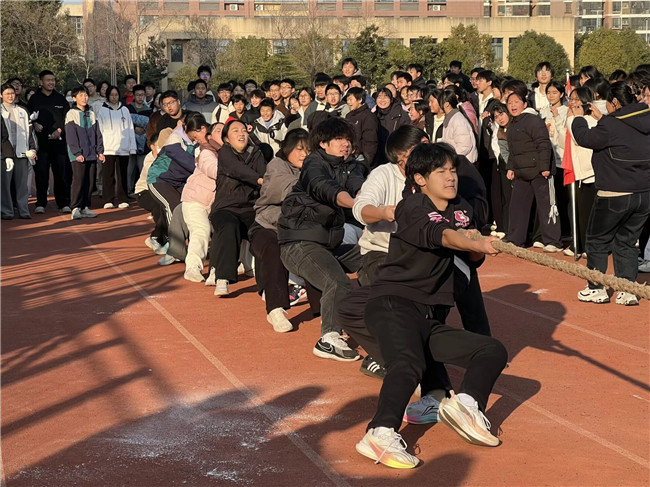 12月25日下午,合肥一六八新店花园学校中学部操场旌旗招展、呐喊震天,九年级“凝心聚力,力拔山河”拔河争霸赛在同学们的热切期盼中正式拉开帷幕。来自九年级12个班的12支参赛队伍齐聚操场,每支队伍由8名男生和7名女生组成,他们用力量与协作演绎了一场场精彩绝伦的较量。