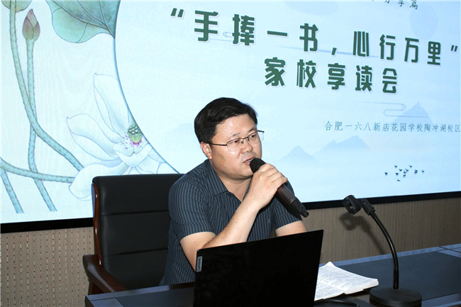 在书香校园活动开展之际,合肥一六八新店花园学校党总支副书记、陶冲湖校区负责人杜军向全校小学生推荐了经典读物《给孩子的古诗词》,希望孩子们在古典诗词的韵律中感受中华文脉的魅力,让书香伴随成长。