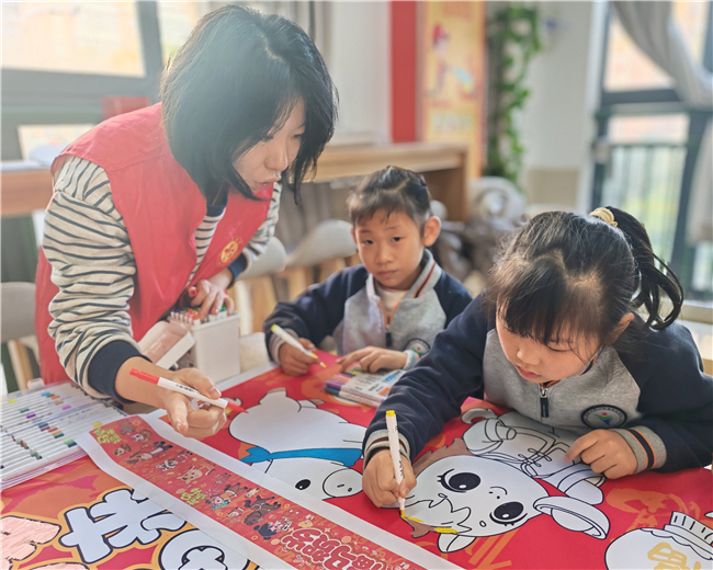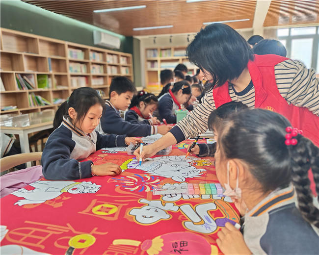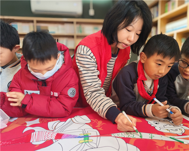 老师和志愿者们穿梭在孩子们中间,时而俯身指导,时而驻足欣赏,和孩子们一同沉浸在创作的乐趣里。孩子们的笑脸与画卷上的缤纷色彩相映成趣,构成了一幅充满生机与活力的冬日校园图景。