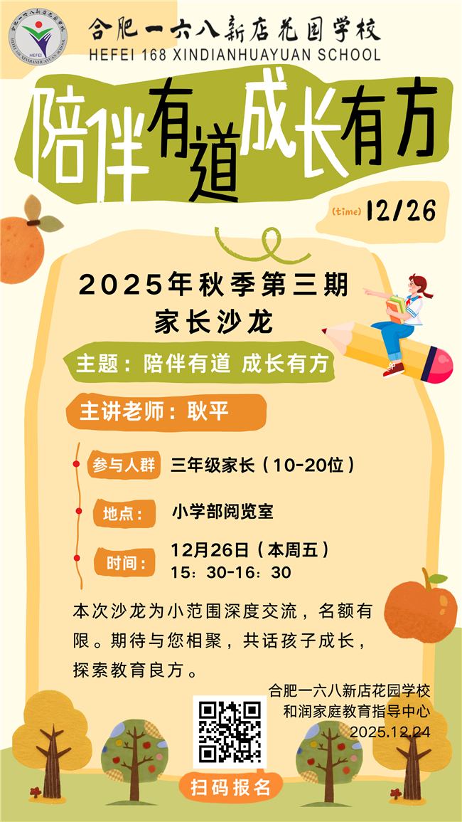 家校携手,共促成长。合肥一六八新店花园学校“和润家庭教育指导中心”将持续通过家长沙龙等多样化形式,凝聚家校教育合力,为孩子们的健康成长保驾护航。