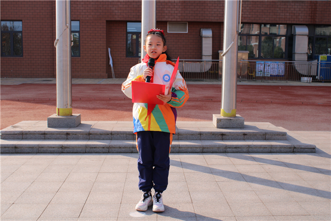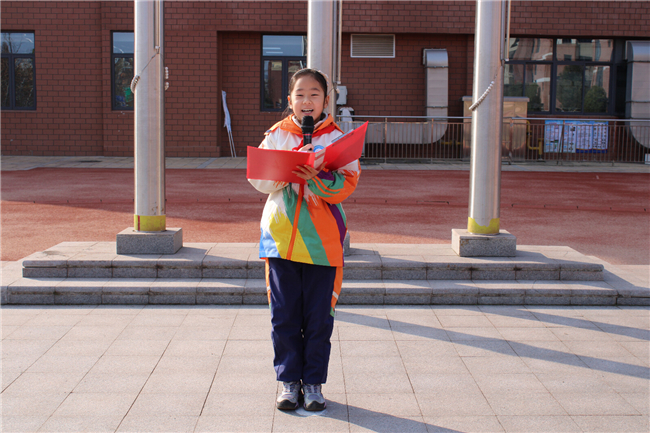 随后,学生代表三(7)中队高琴声在国旗下发言,她总结了过去一年的得与失,并代表全体同学表达了在新的一年里努力学习、积极进取的决心,要将班会上的畅想转化为实际行动。
