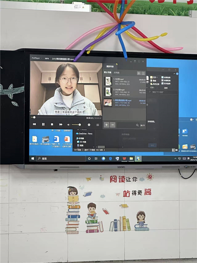 教室里,彩色气球、成长照片墙、手写心愿卡将空间装点得格外温馨,每一处细节都凝聚着老师对孩子们的期许。活动伊始,班主任通过一段精心剪辑的视频,回顾了孩子们从入学初的稚嫩模样到如今的懂事成长,课堂上的专注、运动会上的拼搏、大扫除中的协作等珍贵瞬间,让在场的孩子们不时发出阵阵欢笑与感慨。