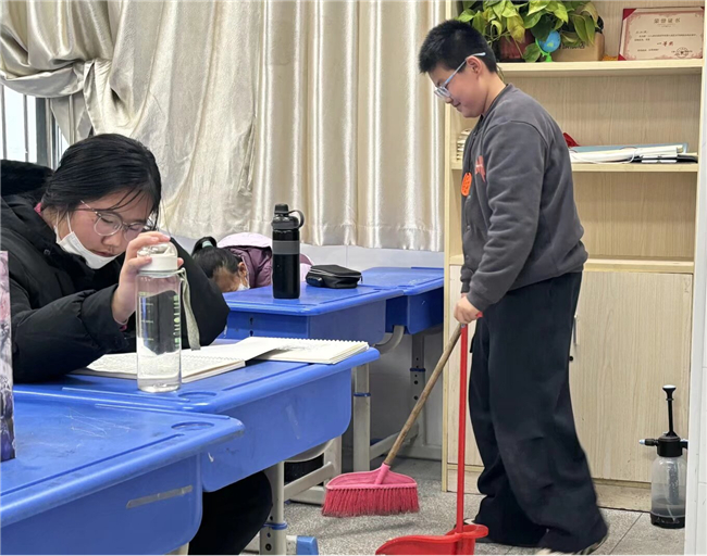 2025年12月31日,元旦联欢活动圆满结束后,合肥一六八新店花园学校组织全体学生开展“爱国卫生运动”,以“清洁环境、健康生活”为主题,对教室及周边环境进行全面清扫,营造整洁、文明的学习氛围。