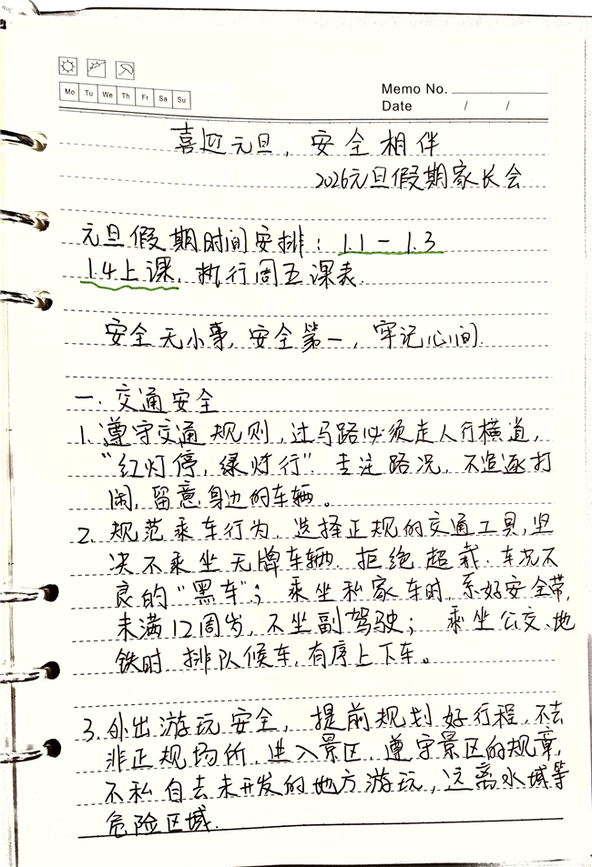 为迎接2026年元旦假期的到来,确保全体学生度过一个安全、健康、愉快的假期,我校于近日通过线上平台组织召开了“喜迎元旦,安全相伴”主题家长会。会议围绕假期安全教育和学生身心健康发展展开,内容全面、重点突出,受到广大家长的积极响应与高度关注。