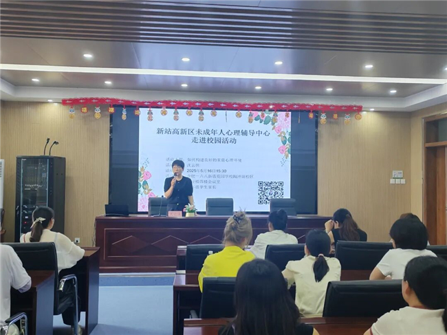 5月16日,开展以“如何构建良好的家庭心理环境”为主题的家长心理健康教育讲座。活动由新站高新区心理辅导中心负责人、国家二级心理咨询师沈云侠主讲,二年级学生家长参与活动。