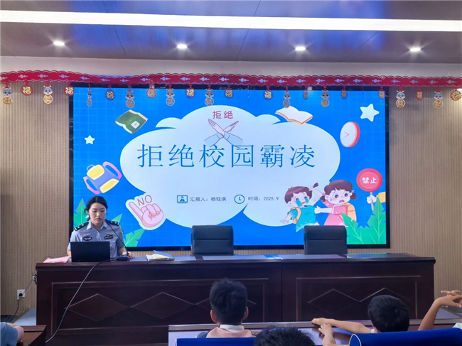 9月12日,合肥一六八新店花园学校陶冲湖校区特邀三十头派出所杨钰琪警官,为全体六年级学生开展法制教育安全讲座。