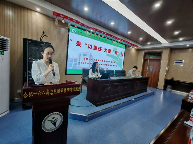 2月11日,合肥一六八新店花园学校陶冲湖校区全体教师会吹响新学期奋进号角。