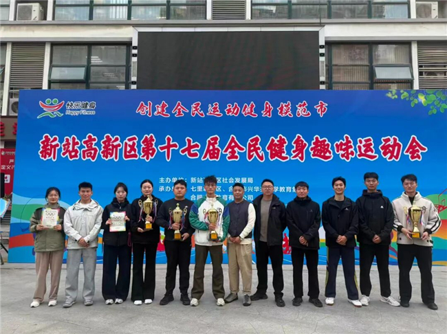 11月13日,合肥一六八新店花园学校陶冲湖校区教师代表队征战新站高新区第十七届全民健身趣味运动会。