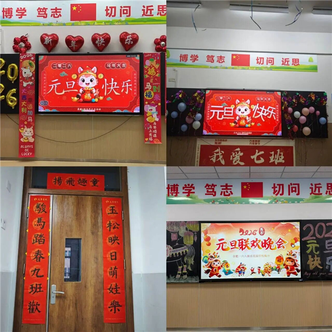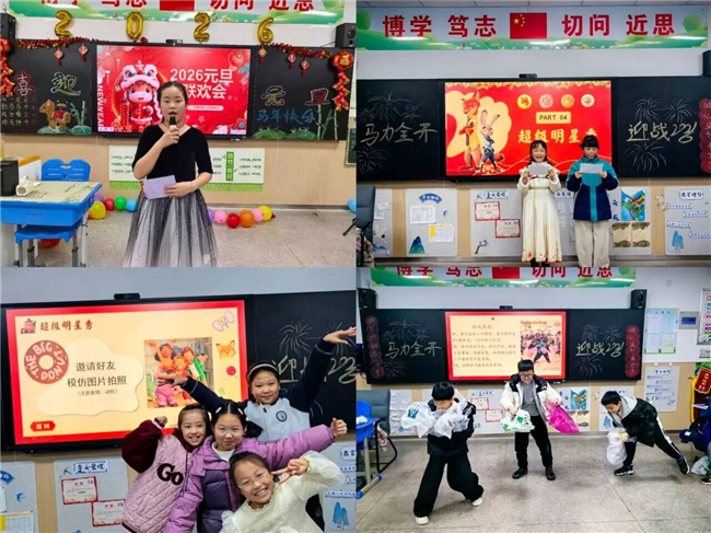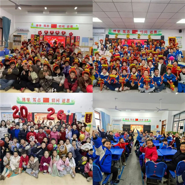 12月31日,合肥一六八新店花园学校陶冲湖校区处处洋溢着喜庆欢快的节日氛围。各班级以“ 萌马踏新,童乐元旦”为主题组织开展了形式多样、内涵丰富的元旦联欢活动,通过这次活动,孩子们以最欢乐的方式告别了2025年,更以最饱满的精神状态,迎接着2026年的第一缕曙光。