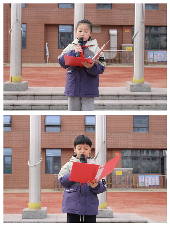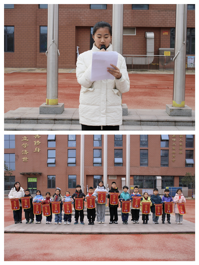 班会之后,全体师生齐聚操场参与升国旗仪式。三(3)中队队员王佳逸沉稳有序地引导仪式全程,五星红旗冉冉升起,师生肃立唱国歌。接着,学生代表赵亦冉结合生活实例发出倡议,号召同学们从随手关灯、拧紧水龙头、光盘就餐等小事做起,将节约融入日常。辅导员年娜敏则从美德传承的角度,阐释勤俭的重要意义,鼓励大家将节约理念内化于心、外化于行。随后,副大队长李雨菲宣读文明班级表彰决定。