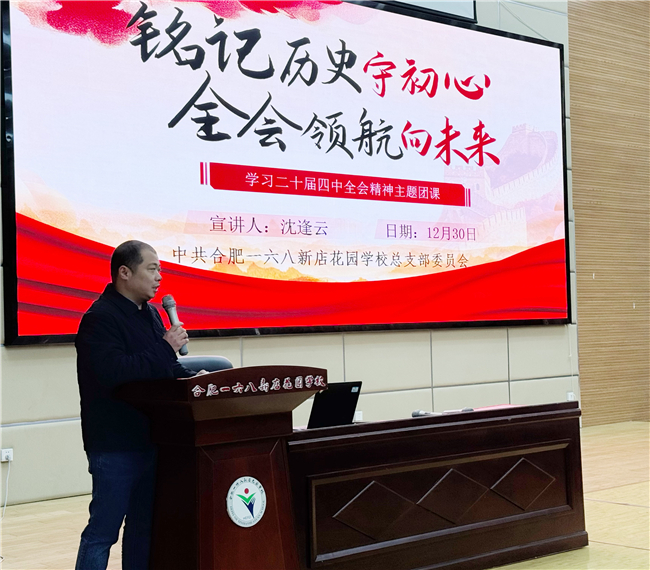 为深入学习贯彻党的全会精神,引导青年团员厚植爱国情怀、坚定理想信念,近日,党总支书记沈逢云以“铭记历史守初心,全会领航向未来”为题讲授专题团课,全体团员参加。