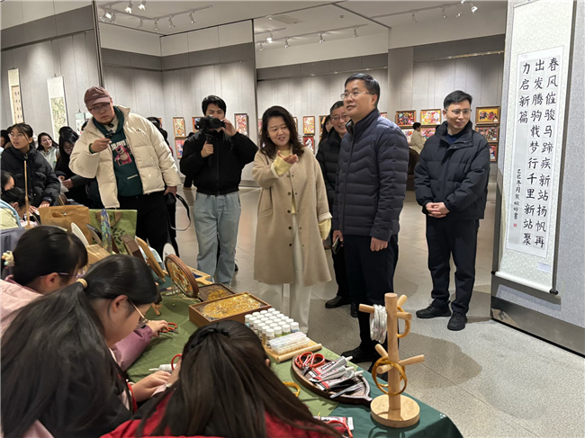 近日,2026年“活力新站,创意马年”新站高新区师生书画作品展暨课后服务艺术社团成果展在合肥市赖少其艺术馆正式拉开帷幕。本次展览汇集了全区各校的优秀书画创作与艺术社团成果,旨在弘扬中华优秀传统文化,展现新时代青少年美育风采及课后服务的创新活力。合肥一六八新店花园学校教育集团积极组织参与,共有19幅师生书画作品成功入展,同时蜡染、景泰蓝掐丝珐琅、版画三个特色艺术社团受邀进行现场展演,成为展览中一道亮丽的风景线。