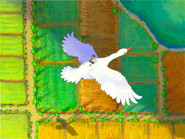 故事的开头,尼尔斯并不讨喜,他不爱读书,却爱欺负小动物。有一次,他他因捉弄了小精灵,而被施了魔法变成拇指般大小的人,更奇妙的是,他能听懂动物的语言。当雄鹅莫顿想跟随雁群飞走时,尼尔斯情急之下抱住鹅颈,却被一起带上了天,自此,一场跨越瑞典的漫长旅行,就这样意外地开始了。