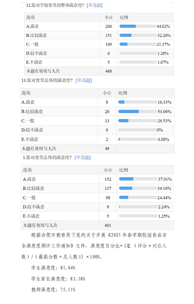 此次食堂满意度调查的开展,进一步拉近了学校与师生、家长之间的距离,为食堂服务质量的提升指明了方向。下一步,我校将持续深耕校园餐饮服务,以更严格的标准把控食品安全,以更精准的举措满足师生需求,让食堂成为学生健康成长的“营养加油站”,让家长更放心、师生更满意。