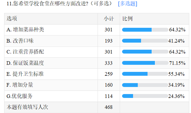 同时,调查也收集到了一系列针对性的意见建议。部分学生和家长提出,希望进一步增加菜品的多样性、注重营养搭配以及冬季饭菜的保温。