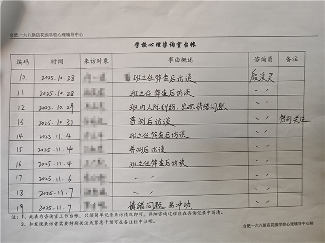 每学期面向全体学生开展标准化心理测评,采用专业量表和访谈相结合的方式,全面评估学生的心理状态。测评数据纳入“一生一策”心理成长档案,动态记录学生情绪变化、压力源与支持需求。对重点关注学生制定个性化关爱方案。