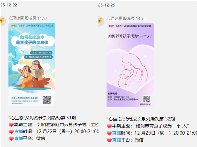 定期推送心理健康家庭指导的相关推文与直播,引导家长阅读与观看,指导家庭科学合理应对孩子情绪问题。