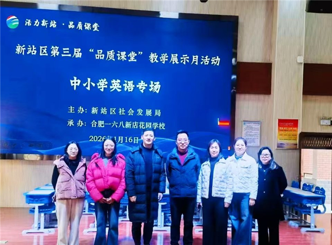 为落实新课标理念,研读新教材内涵,充分发挥名师示范引领作用,1月16日下午,新站高新区第三届“品质课堂”教学展示活动中小学英语专场,在合肥一六八新店花园学校小学部报告厅成功举办。全区一百余名中小学英语教师齐聚一堂,共赴这场聚焦教学、赋能成长的教研盛宴。