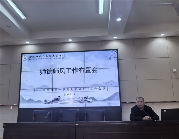 为深入贯彻《新站高新区健全完善 “985” 工作体系促进中小学生健康成长的实施方案》要求,将立德树人根本任务转化为具体育人实践,近日,合肥一六八新店花园学校召开 “985” 育人体系实施方案工作布置会。学校德育部门干部、年级组长及全体班主任教师参会,校长焦长俊作总体工作安排,校党总支书记沈逢云就师德师风建设提出明确要求。