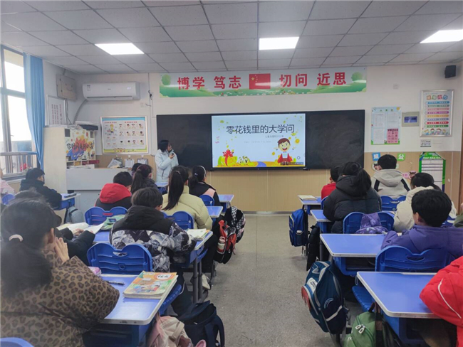 新年将至,零花钱将成为孩子们身边的“小课题”。为培养高段学生勤俭节约、理性消费的良好习惯,2026年1月26日上午,五(4)班特邀吕庭依同学的妈妈走进课堂,开展了以《零花钱里的大学问》为主题的儿童金融知识讲座。吕庭依的妈妈深耕银行行业,凭借专业的金融知识,为孩子们带来了一堂生动有趣、干货满满的财商启蒙课。