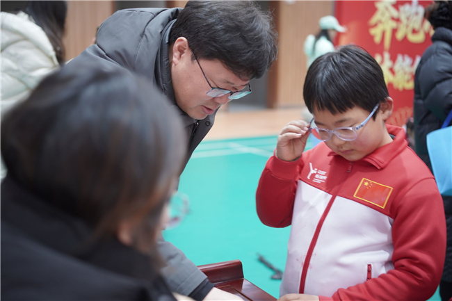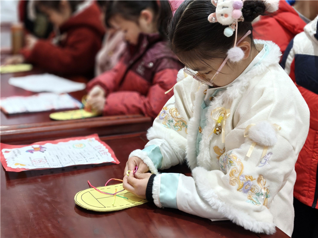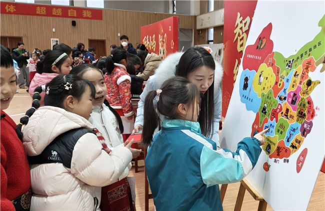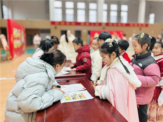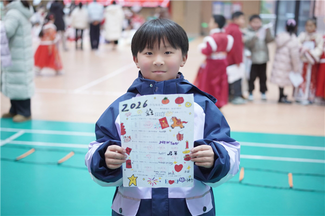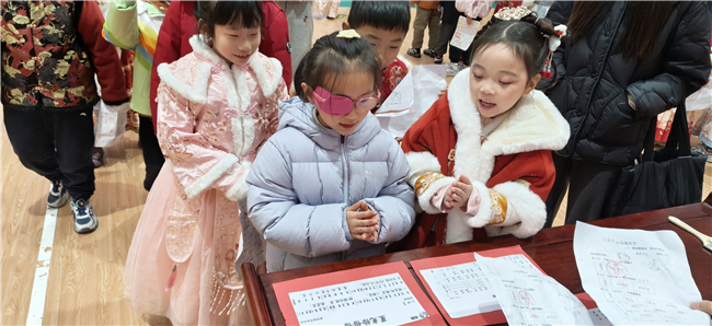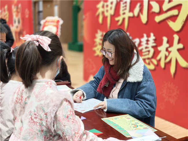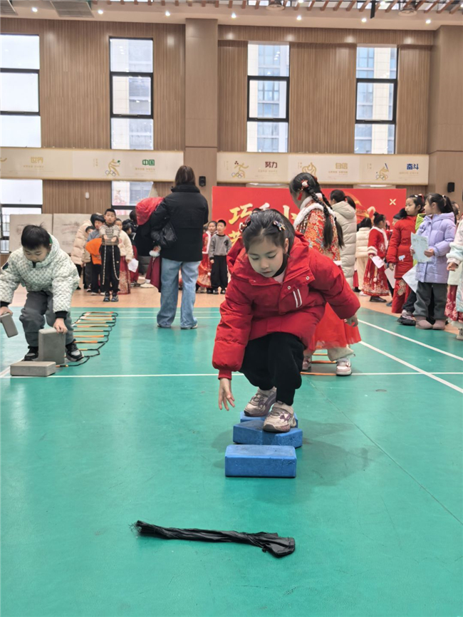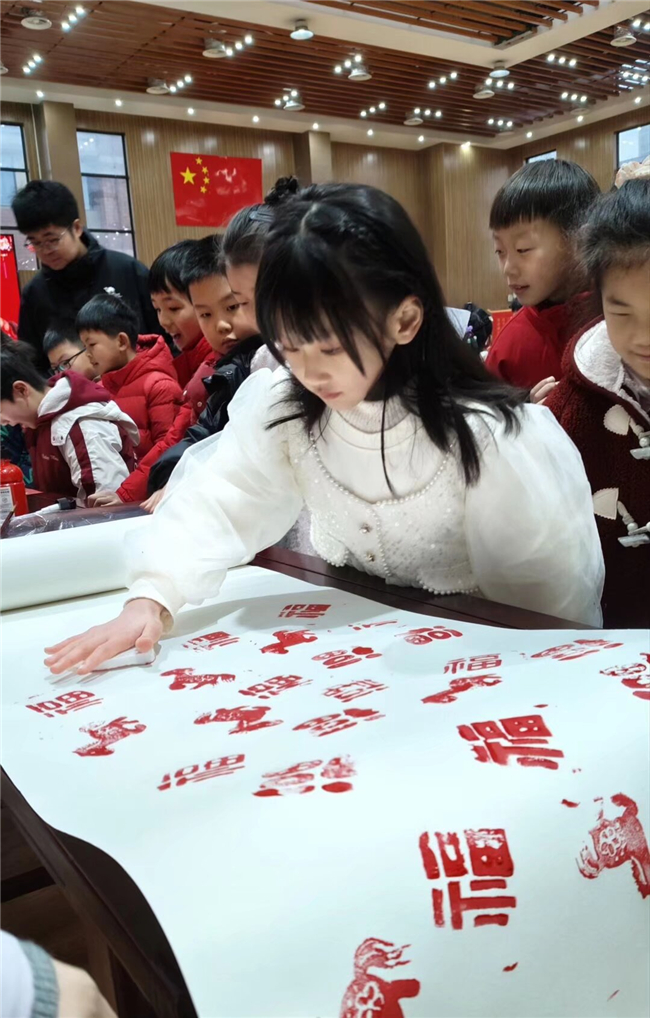 在“语文智慧谷”,孩子们看着带有小马图案的卡片,大声认读生字,快速看图说话,生怕落后小伙伴;“数学智慧林”中,孩子们化身“小骑手”,在规定时间内完成口算挑战,清脆的答题声此起彼伏;“体能健康园”中,活力跳绳、敏捷绳梯站、摸石头过河三项挑战让孩子们尽情释放活力;“巧手小马——艺术创造坊”则是一片创意与美的天地。“趣味拓印马年纳福”活动中,孩子们挑选喜爱的骏马或福字印章,认真拓印出一张张满载年味的作品;柯达伊节奏读谱挑战里,大家跟着旋律拍手律动,准确读出音乐节奏;幸运大转盘前更是热闹非凡,孩子们转动转盘,抽到哪首歌就放声高歌,稚嫩的歌声里满是自信与快乐。