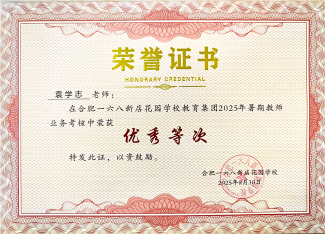 教育之路漫漫,育人之心灼灼。袁学志老师的故事,是无数教育工作者坚守初心的缩影,更是合肥一六八新店花园学校教育集团“为学生幸福人生奠基,为中华民族伟大复兴育才”办学理念的鲜活注脚。愿这份躬耕不辍的教育情怀、矢志不渝的党员担当,能激励更多教育人循着榜样足迹,在平凡的岗位上书写不平凡的育人篇章,让师德之花在校园各处绚烂绽放,让教育的光芒照亮每个孩子的未来之路 。