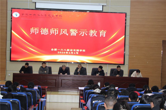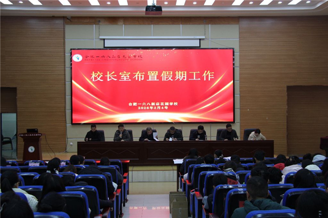为深入学习贯彻习近平新时代中国特色社会主义思想,全面落实党的二十大和二十届三次全会精神,切实推进“双减”“五项管理”等政策落地,总结本学期办学经验、谋划假期重点工作,2026年2月4日上午,合肥一六八新店花园学校教育集团在中学部大报告厅隆重召开2025-2026学年第一学期期末总结大会。集团全体教职工参会,共同回顾一学期的耕耘与收获,展望新一年的发展与征程。