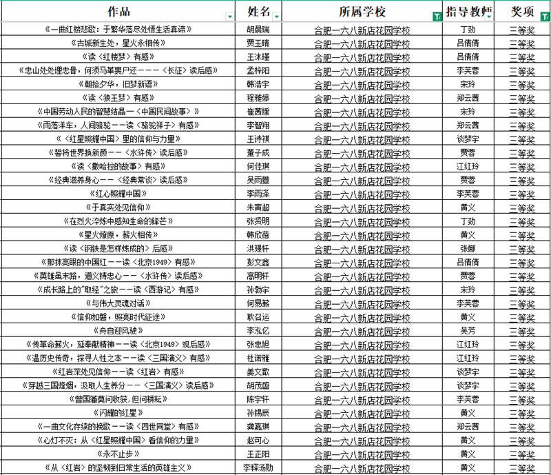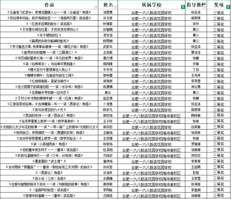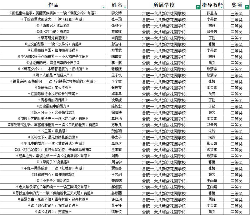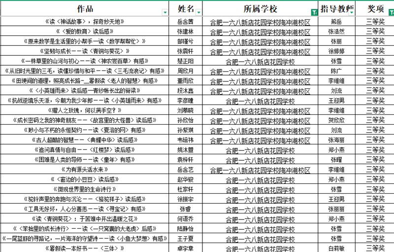 近日,合肥市第十八届“暑假读一本好书”征文活动评比结果揭晓,合肥一六八新店花园学校教育集团在本次征文大赛中取得可喜成绩,共有245人获奖,其中一等奖45人,二等奖77人,三等奖123人。