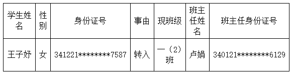 王子妤同学符合转学条件,本学期转入。根据阳光分别原则,经督学、家长代表、教师代表等监督下,随机分班,全程录音录像,现分班结果公示如下: