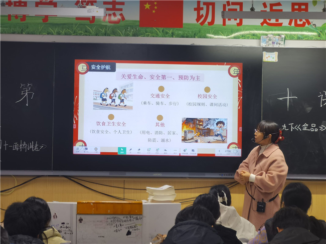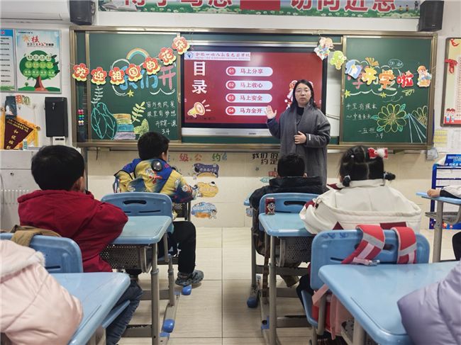 “马上平安”环节,筑牢安全防线。学校始终坚持安全第一、生命至上,各班围绕交通安全、校园安全、饮食卫生安全及日常安全注意事项展开细致讲解。通过案例警示、情景互动、知识普及,强化学生安全防范意识与自我保护能力,为新学期校园生活织密安全防护网。