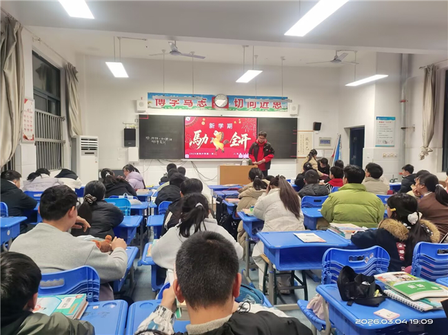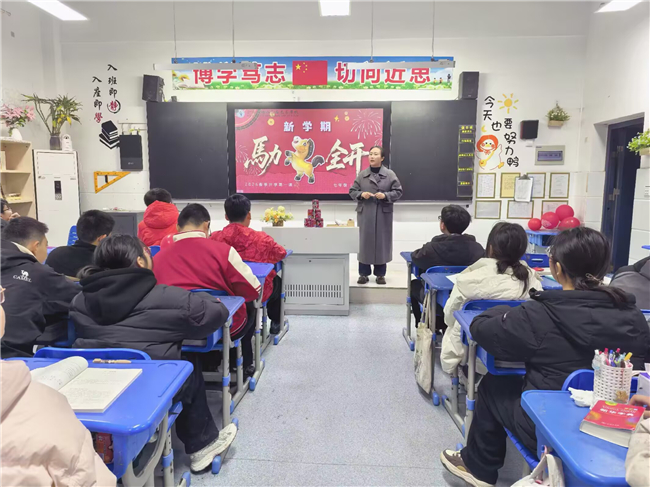 “马力全开”,规划成长新篇。班主任带领同学们重温校规班规与课堂常规,指导大家养成良好学习习惯、掌握高效学习方法,鼓励每位同学制定清晰可行的新学期目标。从行为规范到学业提升,从习惯养成到品格塑造,引导学生以饱满热情与坚定行动,奋力奔跑、逐梦前行。