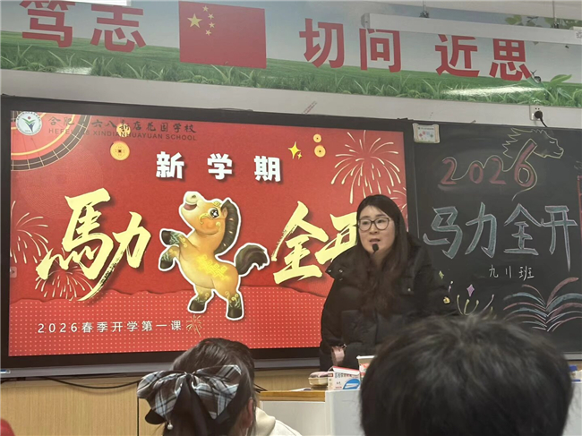 春风送暖,万物复苏。2026年3月4日,待一至九年级的所有学生陆续返校后,合肥一六八新店花园学校教育集团小学部和初中部的全体班主任以心理健康、安全教育、生态文明、健康第一为核心,陆续开展春学期“开学第一课”主题班会活动。各班围绕“马上分享”、“马上收心”、“马上平安”、“马上文明”、“马力全开”五大板块,以生动活泼、贴近学生活动的形式,引导全体同学调整状态、筑牢安全、爱护环境、向阳成长,以昂扬姿态开启新学期征程。