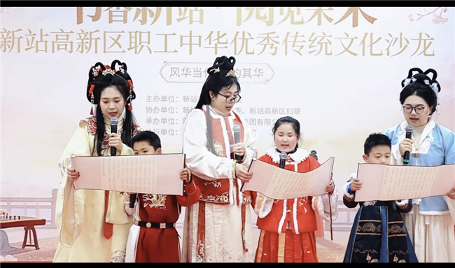 为庆祝“三八”国际妇女节,传承中华优秀传统文化,丰富女职工精神文化生活,近日,由新站高新区总工会主办的“风华当代 灼灼其华”职工中华优秀传统文化沙龙(三八妇女节专场)顺利举办,合肥一六八新店花园学校党员教师张圣洁、窦弘扬、魏贤曼等教师积极参与本次活动,在古韵雅集中感受文化魅力、展现巾帼风采。