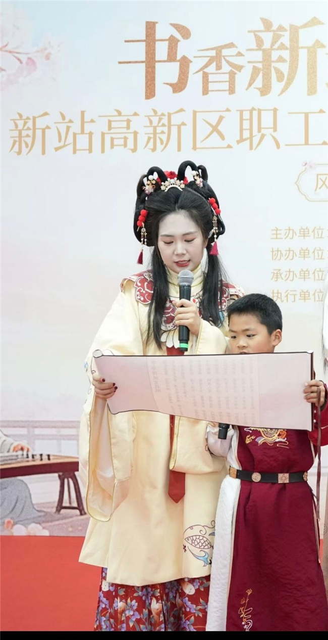 参与活动的党员教师们认真投入、积极交流,魏贤曼老师作为嘉宾代表,分享了自己的活动心得;窦弘扬老师及孩子被邀请上台参与了集体诵读《中华传统文化赋》。