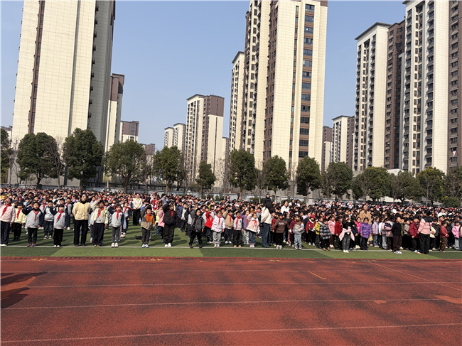 庄严肃穆的国歌奏响,五星红旗冉冉升起,少先队员们行标准队礼,稚嫩的脸庞上满是赤诚,整齐的队礼彰显着少年意气。校旗迎风招展,校歌铿锵嘹亮,声声旋律凝聚着全校师生奋进新征程的坚定信念。