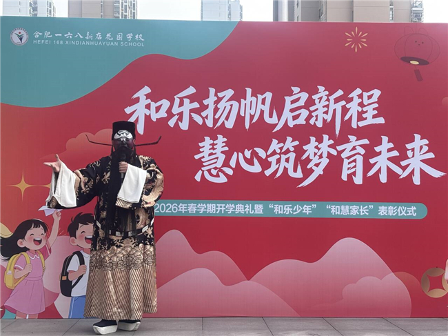 春启新程,万象更新,雅韵润心,薪火相传。为厚植师生家国情怀,丰富审美体验,以昂扬之姿开启新学期,2026年3月9日大课间,合肥一六八新店花园学校教育集团中小学部全体师生齐聚操场,分别以“观春晚雅韵,育家国情怀,启成长新篇”“和乐扬帆启新航,慧心筑梦育未来”为主题,同步隆重举行2025-2026学年度第二学期开学典礼暨第一次升旗仪式。将合肥春晚的艺术魅力融入开学教育,在学校各部门老师的精心筹备与通力协作下,以沉浸式、仪式化的形式,为全体师生带来一场兼具德育温度与美育深度的开学第一课。